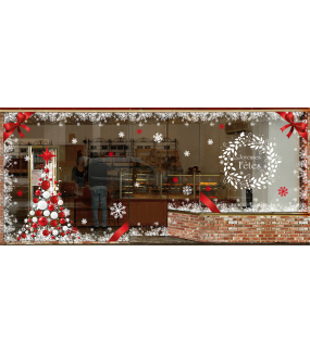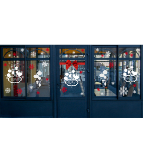Plongez votre boutique dans la magie de Noël grâce à cette vitrophanie composée de 17 cristaux de neige rouges et blancs.