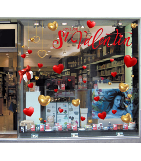 Sticker coeurs dorés à découper et placer selon vos goûts - Cette vitrophanie combinée avec nos autres modèles de différentes catégories habillera votre vitrine, pour la Saint Valentin, mais aussi pour les fêtes des Mères, Pères et Grands-Mères, Pâques, Noël, Soldes, ...