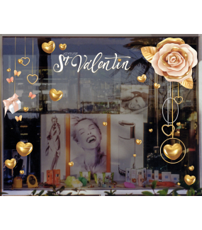 Vitrophanie St Valentin électrostatique pour vitres - Visuel Recto Verso - Sans colle - Repositionnable - Réutilisable - Pose intérieure.