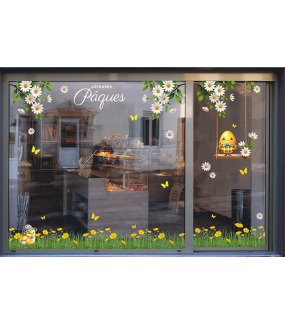 Décoration Pâques électrostatique pour vitres et miroirs imprimée sur film PVC transparent 150 microns.
