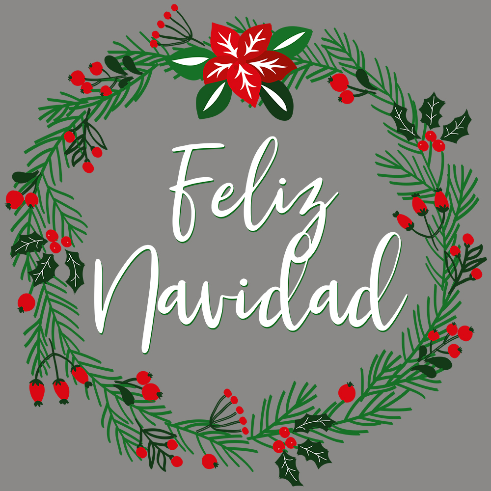 En el centro, el texto “Feliz Navidad” aparece en una bonita caligrafía manuscrita, suave y acogedora.